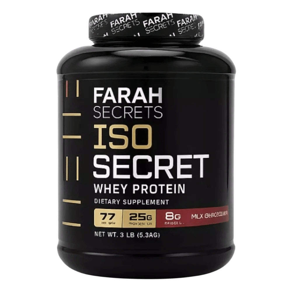 Farah Secret Iso Secret delivers high-quality whey protein isolate formulated for athletes and fitness enthusiasts who demand clean, fast-digesting protein — without the bloat, sugar, or fillers.