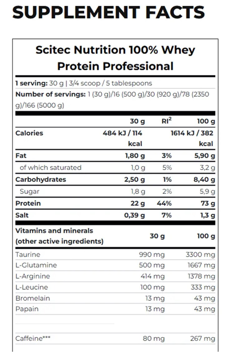 100% Whey Protein* Professional’s whey protein content contributes to an optimal muscle growth and maintenance and to the maintenance of a normal bone structure**. Protein is to our body what bricks are at a construction site. What’s more, we have added extra amino acids (leucine, glutamine, arginine and taurine) to the formula in addition to the original amino acids, as well as digestive enzymes such as Papain and Bromelain.